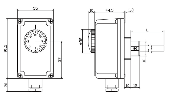 Adjustable liquid expansion temperature switch, compact IP40 protection design, micro control switch that can be rotated. A reliable temperature control with a setting range up to 210°C. Provide complete temperature switch package.