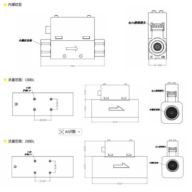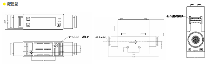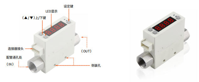 Thermal principle, gas mass flowmeter, display direction can be reversed 180 °. Easy to set and view 4-digit LED display.