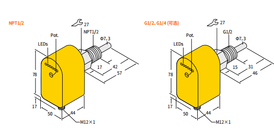 • Wiring method: M12 connector/directly attached 2-wire optional