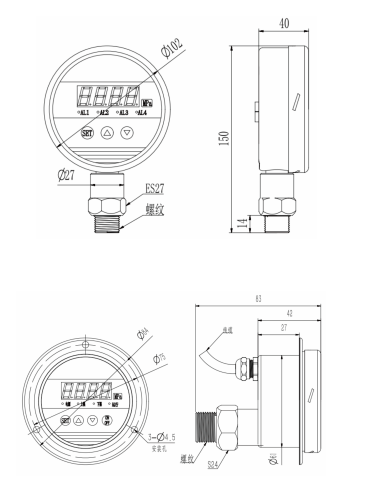 The product adopts a 304 stainless steel shell and joint, which has good seismic resistance and can measure media such as gas, liquid, oil, etc. that are non corrosive to stainless steel.