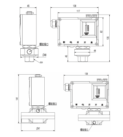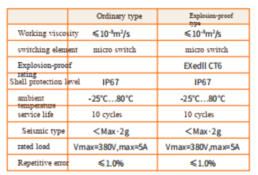 The explosion-proof mark of the explosion-proof product is Exed11CT6, which can be used for automatic pressure control in places where explosive gas mixtures of T1-T6 groups of Class 11A, 11B, and 11C are present in gas, liquid, or steam media that do not corrode pressure sensing components. The setting value adjustment range of the controller is -0.1~40Mpa. The working pressure is 1.5 times the range.