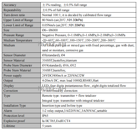 1) Lower limit: the thermal mass flow meter is sensitive to low flow, it can detect 0.05 m/s flow