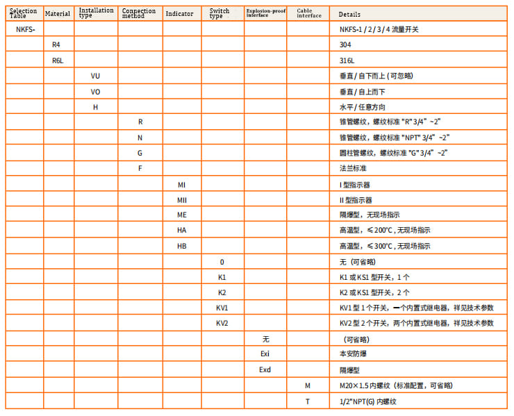NKFS-1~3 flow switches can be composed of Type I or Type II indicators; corresponding to the measurement range in l/h,Circular dials and pointers with scales such as l/min and m3/h allow for convenient observation of flow rates; meanwhile, this type of flow The flow switch can also conveniently adjust the alarm point of the switch without interrupting the flow in the pipeline.