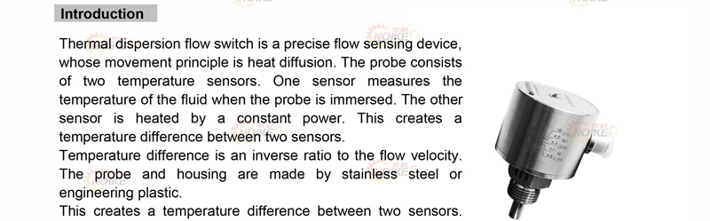 • Description:Thermal dispersion flow switch is a precise flow sensing device
